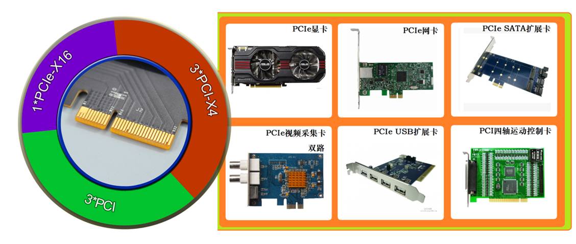 可擴展顯卡、網(wǎng)卡、USB卡,視頻采集卡、運動控制卡等。