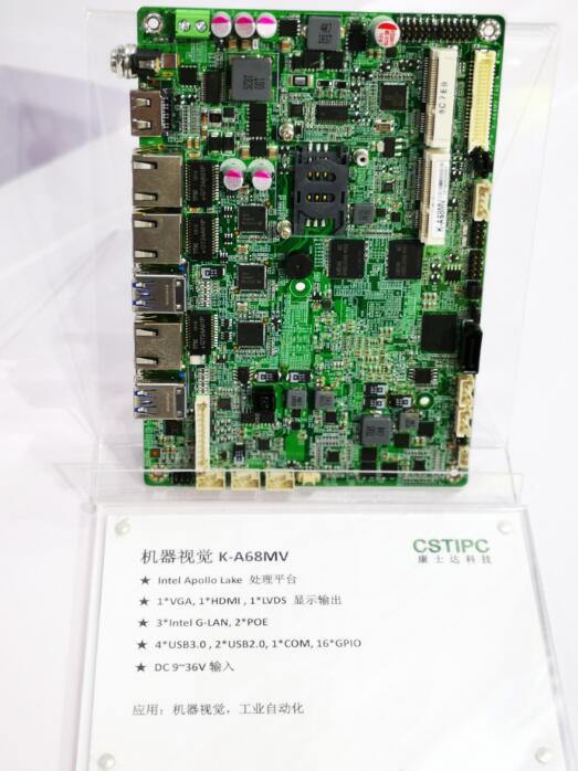 基于此,順應(yīng)市場(chǎng)需求,康士達(dá)推出了基于低功耗、高效能的Intel Apollo lake處理平臺(tái)的機(jī)器視覺(jué)方案,以應(yīng)對(duì)復(fù)雜的生產(chǎn)現(xiàn)場(chǎng)需求。康士達(dá)機(jī)器視覺(jué)新方案K-A68MV應(yīng)用于低端雙攝像頭機(jī)器視覺(jué)方案,主機(jī)采用功耗低、高效能的Intel Apollo lake平臺(tái)處理器,采用Intel Celeron J3355/J3455處理器。主板尺寸165*115mm,4寸主板結(jié)構(gòu)。具備3個(gè)Intel千兆網(wǎng)口,其中支持2路POE相機(jī)接入;主機(jī)支持8路隔離DI與8路隔離DO,能靈活搭配外不控制設(shè)備使用;主機(jī)采用板載內(nèi)存,可采用MSATA卡或板載eMMC存儲(chǔ),支持9~36V寬電壓輸入,能適應(yīng)-20~+70℃寬溫使用環(huán)境,總體來(lái)說(shuō)是一款穩(wěn)定性極佳,高效能的機(jī)器視覺(jué)控制器。