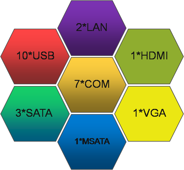 2*LAN/3*SATA+1*MSATA/4*USB3.0+6*USB2.0/7*串口/HDMI+VGA