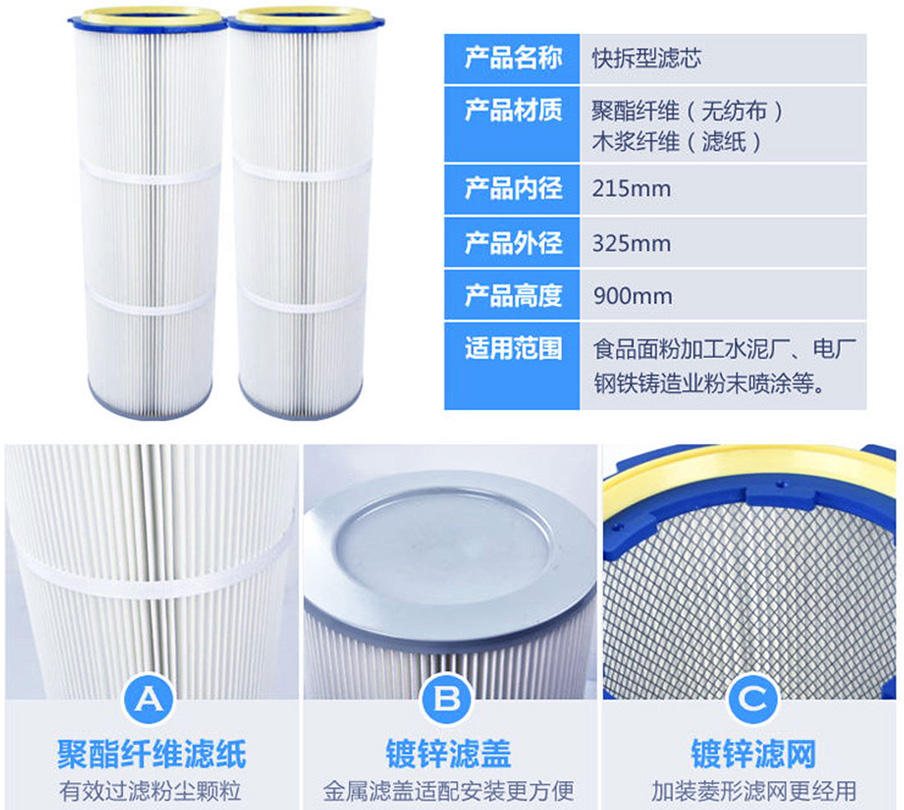 產(chǎn)品簡介:新鄉(xiāng)市利菲爾特濾器股份有限公司專業(yè)生產(chǎn)抗靜電濾材除塵濾筒,空氣除塵濾筒由長度挺括的濾料折疊成褶,尾粘合而成的星形過濾筒。濾筒無籠骨,安裝簡便。空氣除...