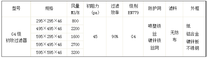 3.板式初效過濾器對(duì)≥5.0μm顆粒的過濾效率在40%~60%之間,常用于空調(diào)與通風(fēng)系統(tǒng)的初級(jí)過濾,以及中央空調(diào)和集中通風(fēng)系統(tǒng)預(yù)過濾和大型空壓機(jī)預(yù)過濾。