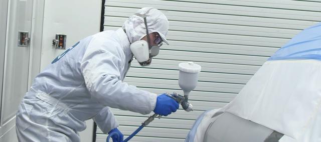 1、檢查鈑金修復的平整度:首先對要噴漆的部位進行檢查是否平整,擦干凈沒有鈑金的噴漆部份,檢查是否有凹陷。2、打磨處理需要補土的部份:用砂輪機將鈑金邊緣進行處理,用砂紙將鈑金周圍磨出羽狀邊,再用砂紙打磨舊漆面,擴將欽金周圍培出羽狀邊,冉用砂紙打若舊涂面:擴大補土的范圍。3、清潔涂油打磨完成后,清洗干凈打磨位置及噴漆位置。4、中涂,盡量控制中涂底漆在較小的范圍,并注意邊緣位置要漸進,不要成臺階狀。5、打磨中涂,待中涂底漆干燥固化后,用砂紙打磨中涂底漆,并準備補土。6、補土,將低凹處的汽車表面用原子灰將其補平,待干打磨。7、研磨,根據(jù)不同的表面形狀選擇不同的打磨方式后將原子灰的邊緣與原車舊漆平穩(wěn)過渡至原車的流水線要求。8、噴底漆 或刮填眼灰對補土處進行噴涂底漆或刮填眼灰并平整原子灰的一些小孔和涂物損壞處。9、底漆打磨,對底漆或填眼灰進行打磨,平整后用砂紙擴大打磨范圍,增強新漆面在舊漆膜上的附著力,完成打磨后便可進入噴漆前的準備。10、吹水遮蔽。對要噴漆的范圍內(nèi)所有的邊緣接口,用壓縮空氣的方式將邊縫內(nèi)的水吹干,對不噴漆的部位進行遮蔽。