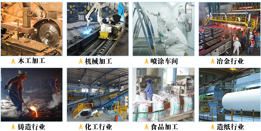 6、建筑行業(yè):對(duì)水泥、陶瓷、玻璃、纖維、鋼筋、石材生產(chǎn)過(guò)程所產(chǎn)生的粉塵進(jìn)行。